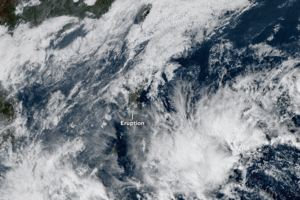 NASA animation of the volcanic plume released by Taal from January 12–13, 2020, using data from JMA's Himawari 8 satellite. The eruption disrupted several flights to and from the Luzon island.