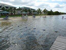 In the summer of 2013, South Village opened the SoVi Pool, a resort-style pool featuring a "beach-entry" and built-in pool volleyball court. FGCU enhanced the North Lake Village complex in 2017 by opening a new lakefront boardwalk and dining facility.[63]