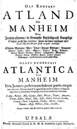 In 1679 Olaus Rudbeck wrote Atlantis (Atlantica), where he argues that Scandinavia, specifically Sweden, is identical with Atlantis.[90][91] According to Rudbeck the capital city of Atlantis was identical to the ancient burial site of Swedish kings Gamla Uppsala.[citation needed]