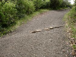 The drain way carries the water that would otherwise be carried by the road. For proper operation of the water bars it must be stable and regularly inspected to ensure that it is free of silt buildup or other obstructions.