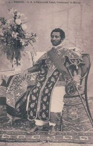 On 1 November 1905, at the age of 13, Tafari was appointed by his father, as the Dejazmatch of Gara Mulatta (a region some twenty miles southwest of Harar).[29] The literal translation of Dejazmatch is "keeper of the door"; it is a title of nobility equivalent to a count.[30] On 27 September 1916, he was proclaimed Crown Prince and heir apparent to the throne (Alga Worrach),[31][32] and appointed Regent Plenipotentiary (Balemulu Silt'an Enderase).[31][33] On 11 February 1917, he was crowned Le'ul-Ras[34] and became known as Ras Tafari Makonnen