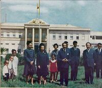The Derg, a committee of low-ranking military officers and enlisted men, set up in June to investigate the military's demands, took advantage of the government's disarray to depose the 82-year-old Haile Selassie on 12 September.[211] General Aman Mikael Andom, a Protestant of Eritrean origin,[207] served briefly as provisional head of state pending the return of Crown Prince Asfa Wossen, who was then receiving medical treatment abroad. Haile Selassie was placed under house arrest briefly at the 4th Army Division in Addis Ababa.[207] At the same time, most of his family was detained at the late Duke of Harar's residence in the north of the capital. The last months of the emperor's life were spent in imprisonment, in the Grand Palace.[212]