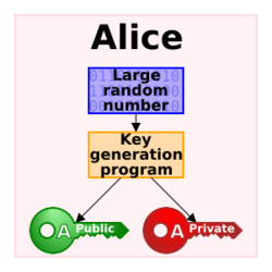 Public-key cryptography, or asymmetric cryptography, is the field of cryptographic systems that use pairs of related keys. Each key pair consists of a public key and a corresponding private key.REFERENCE FOR RFC4949 IS NOT DEFINED YET. You are invited to add it here.[1] Key pairs are generated with cryptographic algorithms based on mathematical problems termed one-way functions. Security of public-key cryptography depends on keeping the private key secret; the public key can be openly distributed without compromising security.[2]