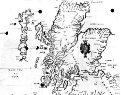 The first written record of St Kilda may date from 1202 when an Icelandic cleric wrote of taking shelter on "the islands that are called Hirtir".[46] Early reports mentioned finds of brooches, an iron sword and Danish coins, and the enduring Norse place names indicate a sustained Viking presence on Hirta, but the visible evidence has been lost.[47] In the late 14th century John of Fordun referred to it as 'the isle of Irte (insula de Irte), which is agreed to be under the Circius and on the margins of the world'.[48] The islands were historically part of the domain of the MacLeods of Harris, whose steward was responsible for the collection of rents in kind and other duties. The first detailed report of a visit to the islands dates from 1549, when Donald Munro suggested that: "The inhabitants thereof ar simple poor people, scarce learnit in aney religion, but M'Cloyd of Herray, his stewart, or he quhom he deputs in sic office, sailes anes in the zear ther at midsummer, with some chaplaine to baptize bairnes ther."[note 5]