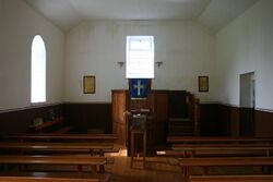 Mackenzie left in 1844.[55] No new minister was appointed for a decade and as a result, the school closed on the MacKenzie's departure and although he had achieved a great deal, the weakness of the St Kildans' dependence on external authority was exposed in 1865 with the arrival of Rev. John Mackay. Despite their fondness for Mackenzie, who stayed in the Church of Scotland, the St Kildans declared in favour of the new Free Church of Scotland during the Great Disruption. Mackay, the new Free Church minister, placed an uncommon emphasis on religious observance. He introduced a routine of three two-to-three-hour services on Sunday at which attendance was effectively compulsory. One visitor noted in 1875 that: "The Sabbath was a day of intolerable gloom. At the clink of the bell, the whole flock hurry to Church with sorrowful looks and eyes bent upon the ground. It is considered sinful to look to the right or to the left."[56]