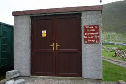 In 1955 the British government decided to incorporate St Kilda into a missile tracking range based in Benbecula, where test firings and flights are carried out. Thus in 1957 St Kilda became permanently inhabited once again. A variety of military buildings and masts have since been erected, including a canteen (which is not open to the public), the Puff Inn.[99] The Ministry of Defence (MOD) leases St Kilda from the National Trust for Scotland for a nominal fee.[100]
