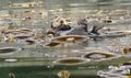 Estuaries provide habitats for a large number of organisms and support very high productivity. Estuaries provide habitats for salmon and sea trout nurseries,[40] as well as migratory bird populations.[41] Two of the main characteristics of estuarine life are the variability in salinity and sedimentation. Many species of fish and invertebrates have various methods to control or conform to the shifts in salt concentrations and are termed osmoconformers and osmoregulators. Many animals also burrow to avoid predation and to live in the more stable sedimental environment. However, large numbers of bacteria are found within the sediment which have a very high oxygen demand. This reduces the levels of oxygen within the sediment often resulting in partially anoxic conditions, which can be further exacerbated by limited water flux. Phytoplankton are key primary producers in estuaries. They move with the water bodies and can be flushed in and out with the tides. Their productivity is largely dependent on the turbidity of the water. The main phytoplankton present are diatoms and dinoflagellates which are abundant in the sediment.