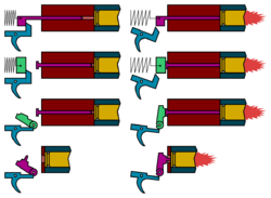 The term tumbler can refer to a part of the hammer or a part mechanically attached to the pivot-point of the hammer, depending on the particular firearm under discussion (see half-cock). According to one source the term tumbler is synonymous with hammer.[3][4]