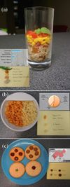 Wang et al. (2016)[7] present some exploratory research entitled Data Edibilization: Representing Data with Food. They argue that “Data edilization benefits from the psychological and behavioral effects from food” (p. 412), e.g. attractiveness, sensory richness, memorability, affectiveness and sociability. “n summary, data edibilization has the potential to more effectively grab users’ attention, stimulate positive reactions and enduring memories, and encourage social interactions in comparison with the other conventional data presentation methods.” (p. 414). After discussing some of challenges (not reported here), the authors identified three strategies: