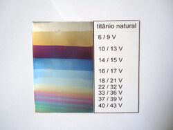 Titanium may be anodized to vary the thickness of the surface oxide layer, causing optical interference fringes and a variety of bright colors.[102] With this coloration and chemical inertness, titanium is a popular metal for body piercing.[103]