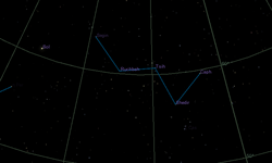 South of about 29° South latitude, Alpha Centauri is circumpolar and never sets below the horizon.[note 2] North of about 29° N latitude, Alpha Centauri never rises. Alpha Centauri lies close to the southern horizon when viewed from the 29° North latitude to the equator (close to Hermosillo and Chihuahua City in Mexico; Galveston, Texas; Ocala, Florida; and Lanzarote, the Canary Islands of Spain ), but only for a short time around its culmination.[36] The star culminates each year at local midnight on 24 April and at local 9 p.m. on 8 June.[36][38]