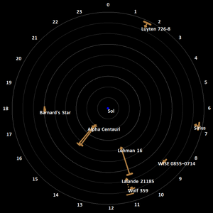 Diagram of the closest stars to the Sun
