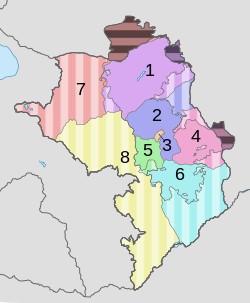 Following the Republic of Artsakh's declaration of independence, the Azerbaijani government abolished the NKAO and created Azerbaijani districts in its place. As a result, some of Artsakh's divisions corresponded with the Azerbaijani districts, while others had different borders.[161]