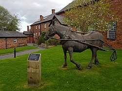 The Sankey Canal was the first British canal of the Industrial Revolution, opening in 1757. It connected St Helens with Spike Island in Widnes. The canal fuelled the growth of the chemical industry in Widnes, which subsequently became the centre of the industry in England.[11] In the mid-18th century the 3rd Duke of Bridgewater built the Bridgewater Canal. Its purpose was to transport coal from his mines to the industrialising city of Manchester. He commissioned the engineer James Brindley to build the canal; the design included an aqueduct carrying the canal over the River Irwell. The aqueduct was an engineering wonder which attracted tourists.[1][12] Its construction was funded entirely by the Duke. It opened in 1761 and was the longest canal constructed in Britain to that date. Canal boats could carry thirty tons at a time; one horse could tow more than ten times the amount of cargo that was possible with a cart.[3] The Bridgewater Canal reduced the price of coal in Manchester by nearly two-thirds within a year of its opening. The canal was a huge financial success and repaid the cost of its construction within just a few years.