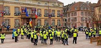 The yellow vests (also known as gilets jaunes in French) is a massive ongoing populist movement that started in France in late 2018, originally to protest the neoliberal policies of president Emmanuel Macron.[1]