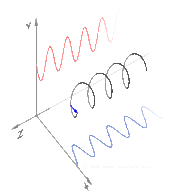 Now if one were to introduce a phase shift in between those horizontal and vertical polarization components, one would generally obtain elliptical polarization[12] as is shown in the third figure. When the phase shift is exactly ±90°, then circular polarization is produced (fourth and fifth figures). Thus is circular polarization created in practice, starting with linearly polarized light and employing a quarter-wave plate to introduce such a phase shift. The result of two such phase-shifted components in causing a rotating electric field vector is depicted in the animation on the right. Note that circular or elliptical polarization can involve either a clockwise or counterclockwise rotation of the field. These correspond to distinct polarization states, such as the two circular polarizations shown above.