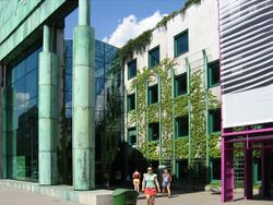The Warsaw University Library building is a short walk downhill from the main campus, in the Powiśle neighborhood.