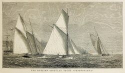 The Russian Circular Yacht Popovotchka was displayed in 1876.