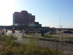 The East Campus is separated from the main campus by Nicolls Road (County Road 97). It is home to the Stony Brook University Hospital and the Health Science Center. Stony Brook University Hospital, completed in 1980, is Suffolk County's only tertiary hospital and Level 1 Trauma Center, and the only academic medical center in Suffolk County—larger also than any in Nassau County.[52] The hospital is the largest in Suffolk County, and the attached Health Sciences Center (HSC) and Basic Science Tower (BST) houses numerous laboratories, the School of Medicine (1972), the School of Nursing (1970), the School of Health Technology and Management (1970) and the School of Social Welfare (1971). The area also includes the Ambulatory Surgery Center and the Center for Outpatient Services.[53]