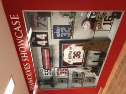 The university's athletics teams were originally known as the Soundmen or the Baymen in the early 1950s when the campus was located in Oyster Bay.[157] Their name was changed to the Warriors in 1960, and again to the Patriots and Lady Patriots in 1966.[157] In 1994, as Stony Brook prepared to become a Division I program, the team nickname was changed again, this time to its current day incarnation, the Seawolves.[157] The team's mascot is named Wolfie.[157]