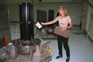 In medical physics and radiotherapy, ionization chambers are used to ensure that the dose delivered from a therapy unit[8] or radiopharmaceutical is what is intended. The devices used for radiotherapy are called "reference dosimeters", while those used for radiopharmaceuticals are called radioisotope dose calibrators - an inexact name for radionuclide radioactivity calibrators, which are used for measurement of radioactivity but not absorbed dose.[9] A chamber will have a calibration factor established by a national standards laboratory such as ARPANSA in Australia or the NPL in the UK, or will have a factor determined by comparison against a transfer standard chamber traceable to national standards at the user's site.[4][10]