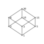 Hasse diagram of the Boolean algebra of divisors of 30.