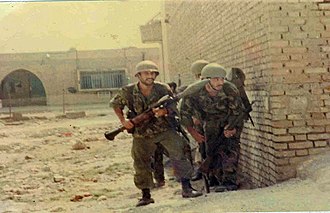 The war ended in 1988 with a costly and bloody stalemate that resulted in no border changes. Iran, though, decisively came out on top. Rather than leading to a collapse of the Khomeini regime like Saddam had hoped, the war actually helped strengthen Iran's fledgling Islamic Republic. Even cultural, ethnic, and religious minorities rallied behind the government to protect it from Hussein's attack.[68] During the war, Iran also reformed its military into a capable fighting force and helped it turn the Revolutionary Guard Corps into the powerful and radical organization it is today.[69] Iranian military deaths are estimated to be around 160,000, and civilian casualties around 16,000.[70]
