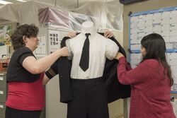 Most mid-size and large museums employ exhibit design staff for graphic and environmental design projects, including exhibitions. In addition to traditional 2-D and 3-D designers[60] and architects, these staff departments may include audio-visual specialists, software designers, audience research, evaluation specialists, writers, editors, and preparators or art handlers. These staff specialists may also be charged with supervising contract design or production services. The exhibit design process builds on the interpretive plan for an exhibit, determining the most effective, engaging and appropriate methods of communicating a message or telling a story. The process will often mirror the architectural process or schedule, moving from conceptual plan, through schematic design, design development, contract document, fabrication, and installation. Museums of all sizes may also contract the outside services of exhibit fabrication businesses.[61]