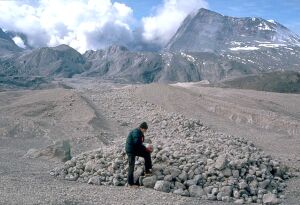 During Plinian eruptions, pumice and ash are formed when foaming silicic magma is fragmented in the volcanic conduit, because of rapid shear driven by decompression and the growth of microscopic bubbles. The pyroclasts are then entrained with hot gases to form a supersonic jet that exits the volcano, admixes and heats cold atmospheric air to form a vigorously buoyant eruption column that rises several kilometers into the stratosphere and cause aviation hazards.[7] Particles fall from atmospheric eruption plumes and accumulate as layers on the ground, which are described as fallout deposits.[8]