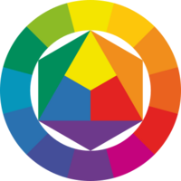 A representation of Johannes Itten's color wheel showing his red, yellow, and blue as primary colors within the central equilateral triangle.