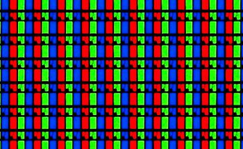 A photograph of the red, green, and blue elements (subpixels) of an LCD. Additive mixing explains how light from these colored elements can be used for photorealistic color image reproduction.