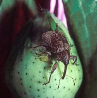 Historically, in North America, one of the most economically destructive pests in cotton production has been the boll weevil. Due to the United States Department of Agriculture's highly successful Boll Weevil Eradication Program (BWEP), this pest has been eliminated from cotton in most of the United States. This program, along with the introduction of genetically engineered cotton containing a gene that codes for a plant-produced protein that is toxic to a number of pests, such as tobacco budworm, cotton bollworm and pink bollworm, has allowed a reduction in the use of synthetic insecticides.
