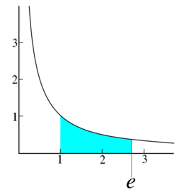 Euler's number e corresponds to shaded area equal to 1, introduced in chapter VII