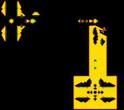 Although the detailed evolution of this cellular automaton is very different from Conway's Game of Life, it exhibits complex behavior similar to that rule: there are many known small oscillators and spaceships, and guns formed by combining oscillators in such a way that they periodically emit spaceships of various types.