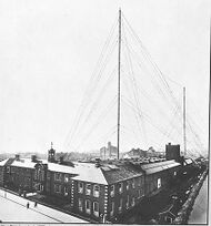 Outgrowing its Hall Street premises, Marconi moved to the purpose-built 70,000-square-foot (6,500-square-metre) New Street Works in June 1912. On 15 June 1920 the factory hosted the first official publicised sound broadcast in the United Kingdom, featuring Dame Nellie Melba and using two 450-foot (140-metre) radio broadcasting masts.