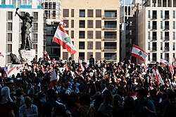 On 17 October 2019, the first of a series of mass civil demonstrations erupted;[123][124][125] they were initially triggered by planned taxes on gasoline, tobacco and online phone calls such as through WhatsApp,[126][127][128] but quickly expanded into a country-wide condemnation of sectarian rule,[129] a stagnant economy and liquidity crisis, unemployment, endemic corruption in the public sector,[129] legislation (such as banking secrecy) that is perceived to shield the ruling class from accountability[130][131] and failures from the government to provide basic services such as electricity, water and sanitation.[132]