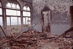 On 16 September 1989 the committee issued a peace plan which was accepted by all. A ceasefire was established, the ports and airports were re-opened and refugees began to return.[66] In the same month, the parliament agreed to the Taif Agreement, which included an outline timetable for Syrian withdrawal from Lebanon and a formula for the de-confessionalization of the Lebanese political system.[66] The civil war ended at the end of 1990 after 16 years; it had caused massive loss of human life and property and devastated the country's economy. It is estimated that 150,000 people were killed and another 200,000 wounded.[78] Nearly a million civilians were displaced by the war, and some never returned.[79] Parts of Lebanon were left in ruins.[80] The agreement has still not been implemented in full and Lebanon's political system continues to be divided along sectarian lines.