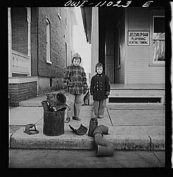 The program used the slogan "Save, Serve, and Conserve".[2] "Save" meant students were asked to save money to buy war saving stamps and bonds to pay for war material. "Serve" meant directly training in or performing war-related tasks such as providing first-aid, radio/telegraph communication, firefighting, enemy plane spotting, childcare, etc. "Conserve" referred to the wartime collection of materials such as scrap metal and rubber, aluminum, paper, string, cloth, kitchen fat, as well as reducing waste by repairing and reusing items like shoes and clothes.[2]