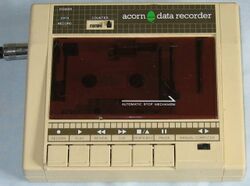 The Electron was able to save and load programs onto audio cassette via a supplied cable that connected it to any standard tape recorder that had the correct sockets. It was capable of bitmapped graphics, and could use either a television set, a colour (RGB) monitor or a monochrome monitor as its display. Several expansions were made available to provide many of the capabilities omitted from the BBC Micro. Acorn introduced a general-purpose expansion unit, the Plus 1, offering analogue joystick and parallel ports, together with cartridge slots into which ROM cartridges, providing software, or other kinds of hardware expansions, such as disc interfaces, could be inserted.[4] Acorn also produced a dedicated disc expansion, the Plus 3, featuring a disc controller and 3.5-inch floppy drive.[5]