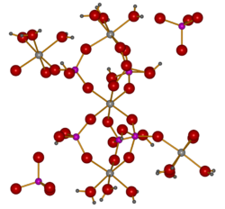 4) groups coordinating three crystallographically distinct aluminium centres, each of which has coordination number six. Near the middle of each layer, an aluminium ion octahedrally coordinates six HPO2−