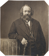 The first anarchist journal to use the term "libertarian" was Le Libertaire, Journal du Mouvement Social and it was published in New York City between 1858 and 1861 by French anarcho-communist Joseph Déjacque.[40] The next recorded use of the term was in Europe, when "libertarian communism" was used at a French regional anarchist Congress at Le Havre (16–22 November 1880). January 1881 saw a French manifesto issued on "Libertarian or Anarchist Communism". Finally, 1895 saw leading anarchists Sébastien Faure and Louise Michel publish La Libertaire in France".[40] The word stems from the French word libertaire, which was used to evade the French ban on anarchist publications.[41] In this tradition, the term "libertarianism" in "libertarian socialism" is generally used as a synonym for anarchism, which some say is the original meaning of the term; hence "libertarian socialism" is equivalent to "socialist anarchism" to these scholars.[42][43] In the context of the European socialist movement, "libertarian" has conventionally been used to describe those who opposed state socialism, such as Mikhail Bakunin.