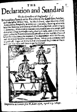 For Roderick T. Long, libertarian socialists claim the 17th century English Levellers among their ideological forebears.[99] Various libertarian socialist authors have identified the written work of English Protestant social reformer Gerrard Winstanley and the social activism of his group (the Diggers) as anticipating this line of thought.[100][101] For anarchist historian George Woodcock, although Pierre-Joseph Proudhon was the first writer to call himself an anarchist, at least two predecessors outlined systems that contain all the basic elements of anarchism. The first was Gerrard Winstanley (1609–c. 1660), a linen draper who led the small movement of the Diggers during the Commonwealth. Winstanley and his followers protested in the name of a radical Christianity against the economic distress that followed the English Civil War and against the inequality that the grandees of the New Model Army seemed intent on preserving.[102]