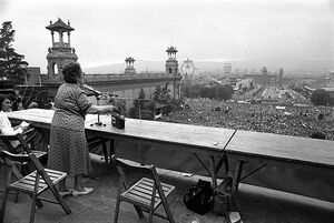 Libertarian possibilism was a political current within the early 20th-century Spanish anarchist movement which advocated achieving the anarchist ends of ending the state and capitalism with participation inside structures of contemporary parliamentary democracy.[211] The name of this political position appeared for the first time between 1922–1923 within the discourse of catalan anarcho-syndicalist Salvador Segui when he said: "We have to intervene in politics in order to take over the positions of the bourgoise".[212] During the autumn of 1931, the "Manifesto of the 30" was published by militants of the anarchist trade union Confederación Nacional del Trabajo (CNT). Among those who signed it there was the CNT General Secretary (1922–1923) Joan Peiro, Angel Pestaña (General Secretary in 1929) and Juan Lopez Sanchez. Their current was called treintismo and they called for a more moderate political line within the Spanish anarchist movement. In 1932, they established the Syndicalist Party which participated in the 1936 Spanish general election and proceeded to be a part of the leftist coalition of parties known as the Popular Front, obtaining two congressmen (Pestaña and Benito Pabon). In 1938, Horacio Prieto, general secretary of the CNT, proposed that the Iberian Anarchist Federation transform itself into a libertarian socialist party and that it participate in national elections.[213] In November 1936, the Popular Front government appointed the prominent anarcha-feminist Federica Montseny as Minister of Health. In doing so, she became the first woman in Spanish history to be a cabinet minister.[214] When the republican forces lost the Spanish Civil War, the city of Madrid was turned over to the Francoist forces in 1939 by the last non-Francoist mayor of the city, the anarchist Melchor Rodríguez García.[215]