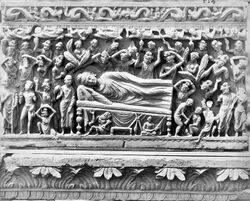 There are two stages in nirvana, one in life, and one final nirvana upon death; the former is imprecise and general, the latter is precise and specific.[80] The nirvana-in-life marks the life of a monk who has attained complete release from desire and suffering but still has a body, name and life. The nirvana-after-death, also called nirvana-without-substrate, is the complete cessation of everything, including consciousness and rebirth.[80] This main distinction is between the extinguishing of the fires during life, and the final "blowing out" at the moment of death:[81][quote 7]