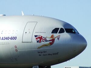 Nose art is largely a military tradition, but civilian airliners operated by the Virgin Group feature "Virgin Girls" on the nose as part of their livery. In a broad sense, the tail art of several airlines such as the Eskimo of Alaska Airlines can be called "nose art", as are the tail markings of present-day U.S. Navy squadrons. There were exceptions, including the VIII Bomber Command, 301st Bomb Group B-17F "Whizzer", which had its girl-riding-a-bomb on the dorsal fin.[3]