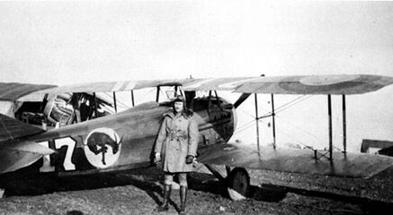 Eddie Rickenbacker with SPAD XIII (note the "Hat in the Ring" 94th Aero Squadron insignia), France, 1918