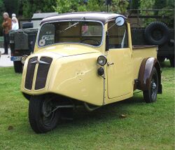 The Goliath F400 is a three-wheeled pickup transporter, made by Hansa-Lloyd and Goliath Company Borgward & Tecklenborg in Bremen, Germany which was sold under the brand Goliath. It was based on the three-wheeled passenger car Goliath Pionier with a closed timber-framed wood cab.[1]