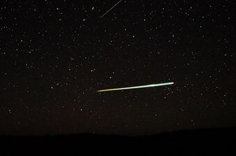 A meteor of the Leonid meteor shower; the photograph shows the meteor, afterglow, and wake as distinct components