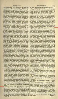It appears, in fact, from this, as well as from the extant fragments, that the first book (from Philolaus) of the work contained a general account of the origin and arrangement of the universe. The second book appears to have been an exposition of the nature of numbers, which in the Pythagorean theory are the essence and source of all things. (p. 305)