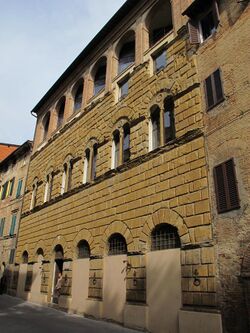On December 26, 1240, Ildebrandino Cacciaconti, the then podestà of Siena, signed a decree imposing a tax on citizens of Siena who rented rooms to students of the local "Studium Senese". The money from this tax went to pay for the salaries of the maestri (teachers) of this new studium.[2] The studium was further supported when, in 1252, Pope Innocent IV declared both its teachers and students completely immune from taxes and forced labour levied on their person or property by the city of Siena.[3] Moreover, the commune exempted teachers of law and Latin from military service and teachers of Latin were also excused from their duties as night watchmen. By the early 14th century, there were five teachers of Latin, logic and law and two doctors of natural sciences (medicine).[4]